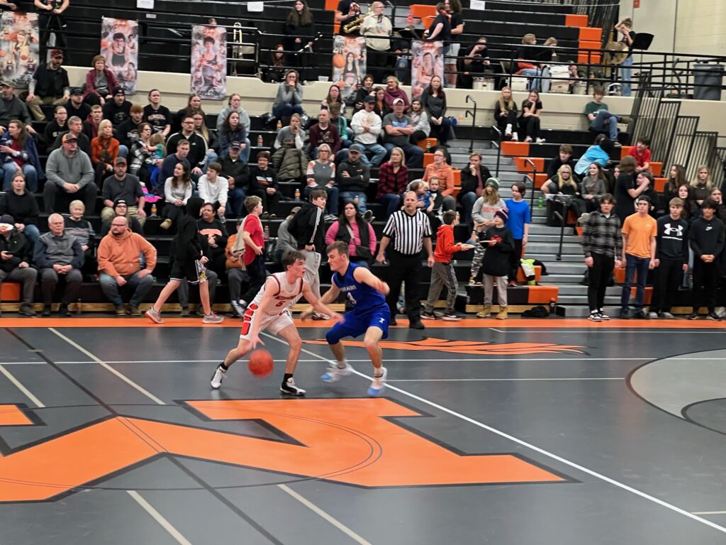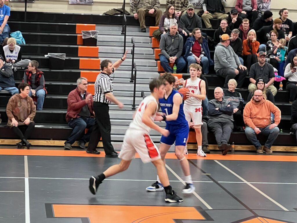 In a loud, face paced, and pep band fueled game, the Mustang boys bury the Ishpeming Hematities 53-28.