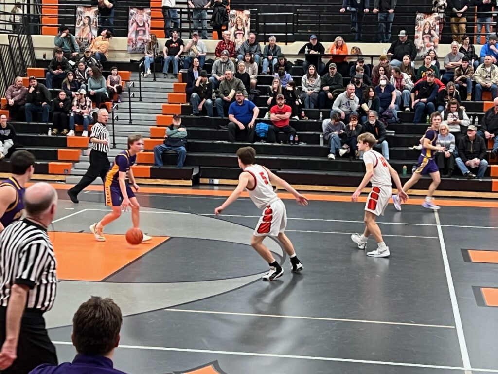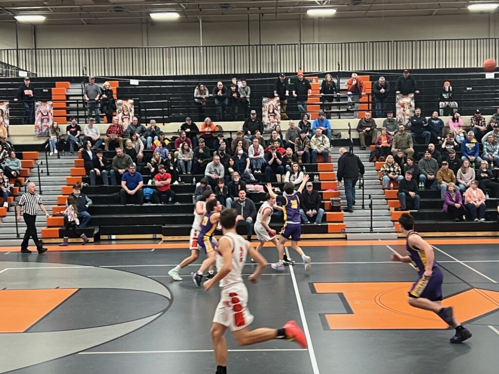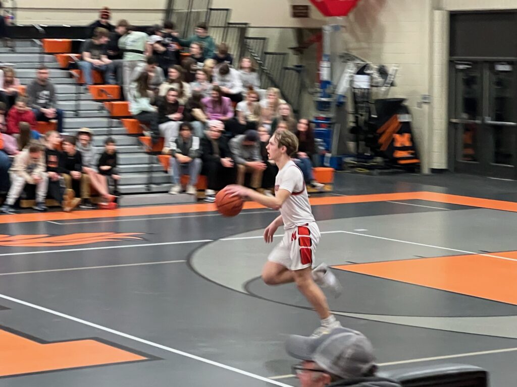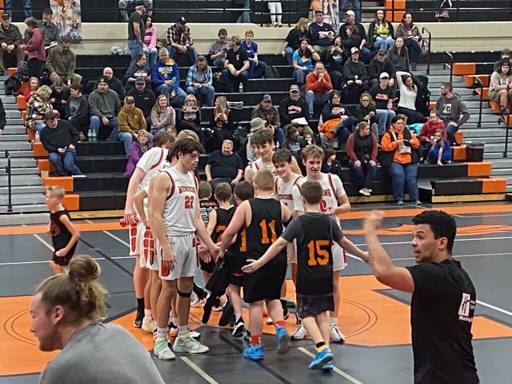The Mustang boys decommission the Rapid River Rockets 86-44. Trevor Nolan scores 1,000th career point.