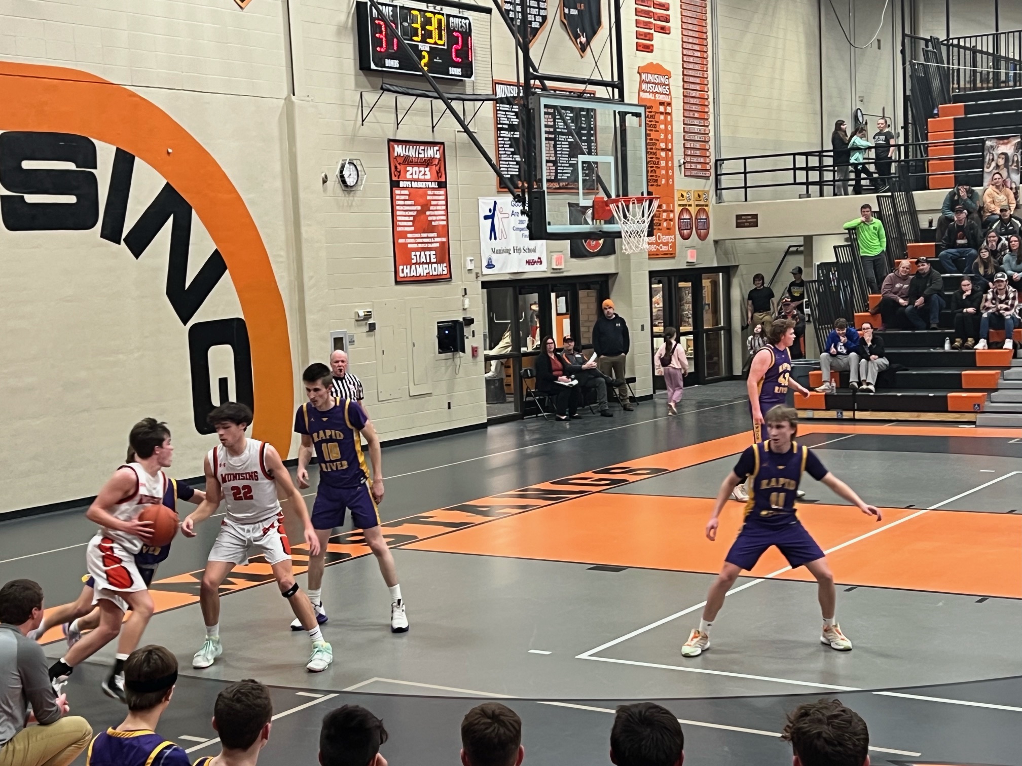 The Mustang boys decommission the Rapid River Rockets 86-44. Trevor Nolan scores 1,000th career point.