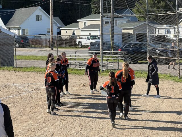 In a cool afternoon fueled by a North wind off Lake Superior, the Mustang girls softball team fall to the Carney Nadeau Wolves 29-13 in the first game of the double header. Congratulations to Toni Briggs the WQXO player of the game. We plan on broadcasting future softball and baseball games. Keep checking out Facebook page for updates.