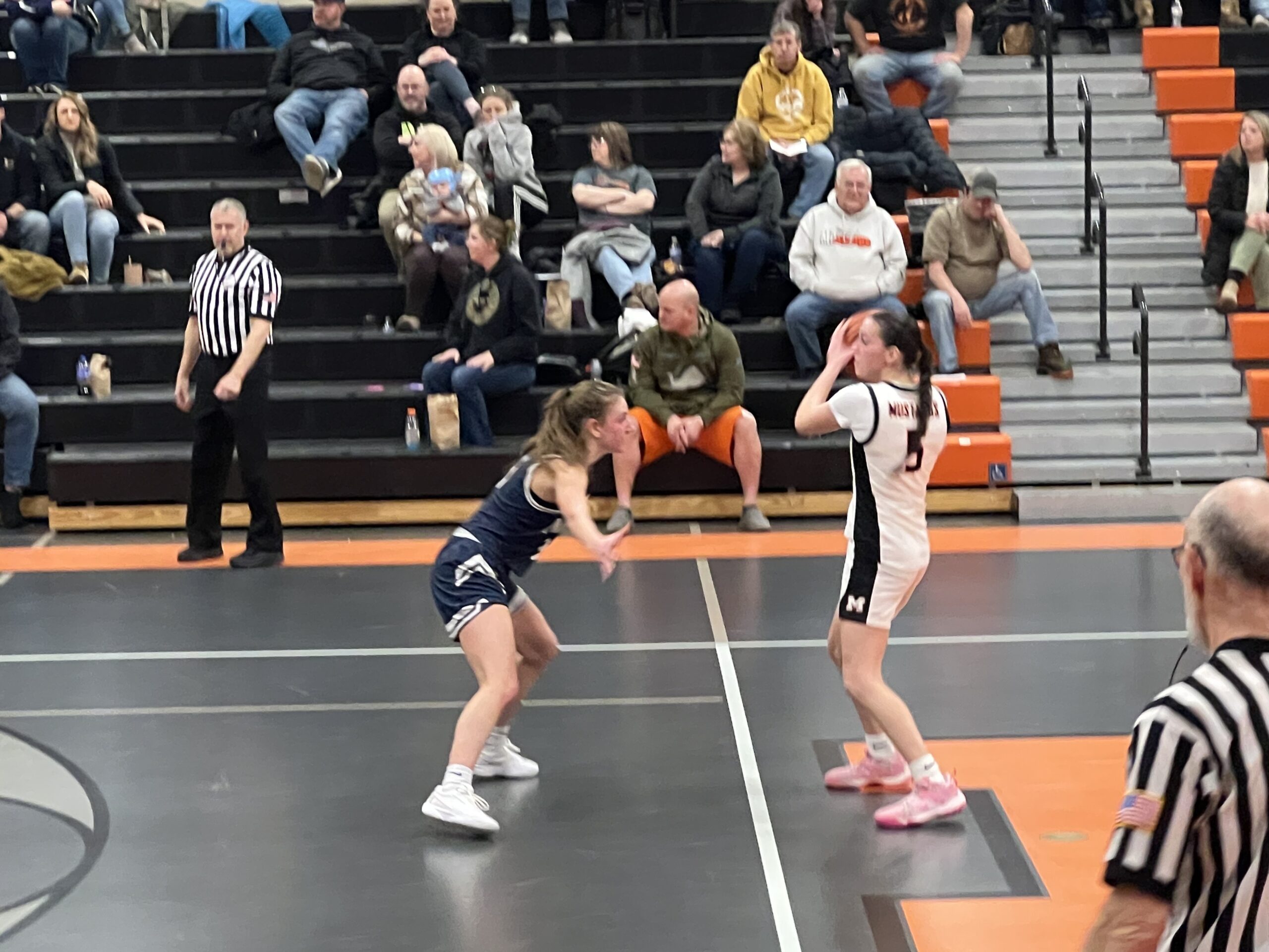 On a cold and snowy night the Mustang girls dethrone the Norway Knights 58-47.