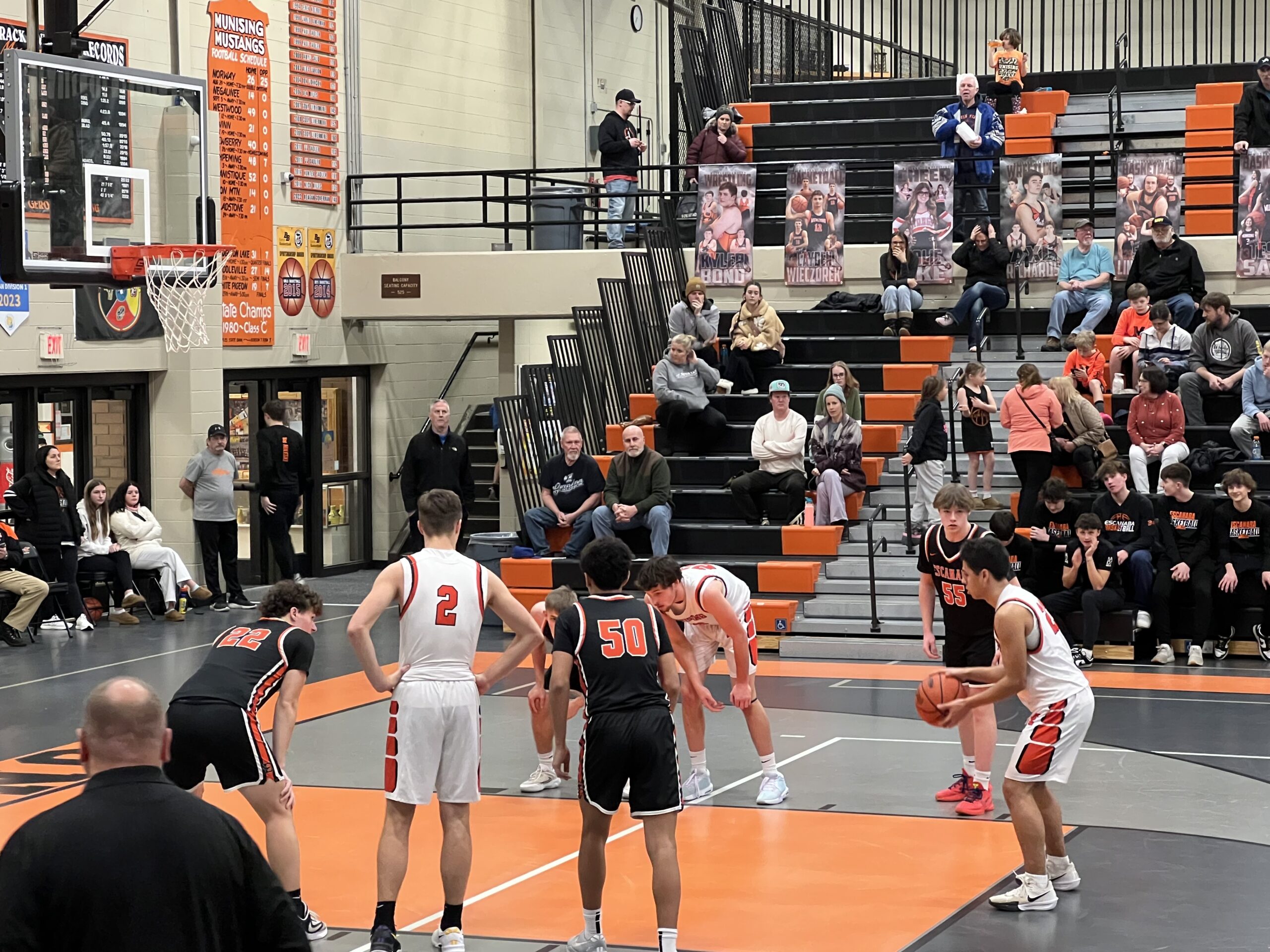 The Mustang boys dominated the Escanaba Eskymos in a raucous gym tonight in Munising, 69-38.