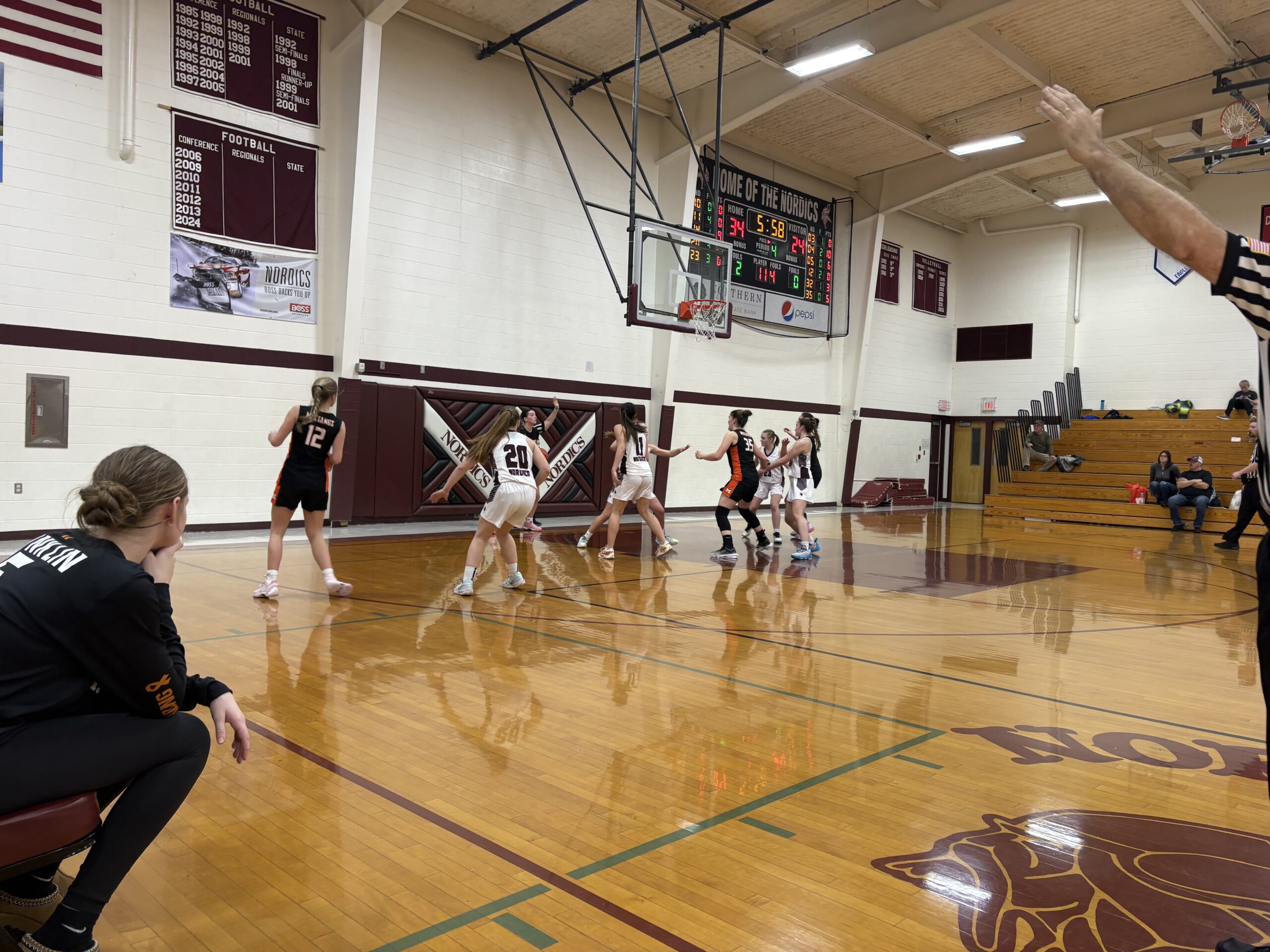 A tough night for the Mustang girls as they fall to the North Dickinson Nordics, 38-47.
