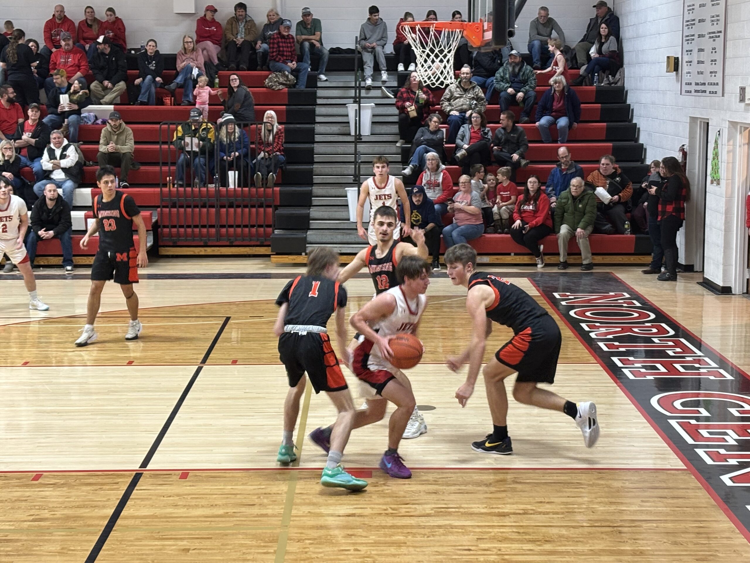 The Mustang boys shoot down the North Central Jets this evening in Powers, 54-29.