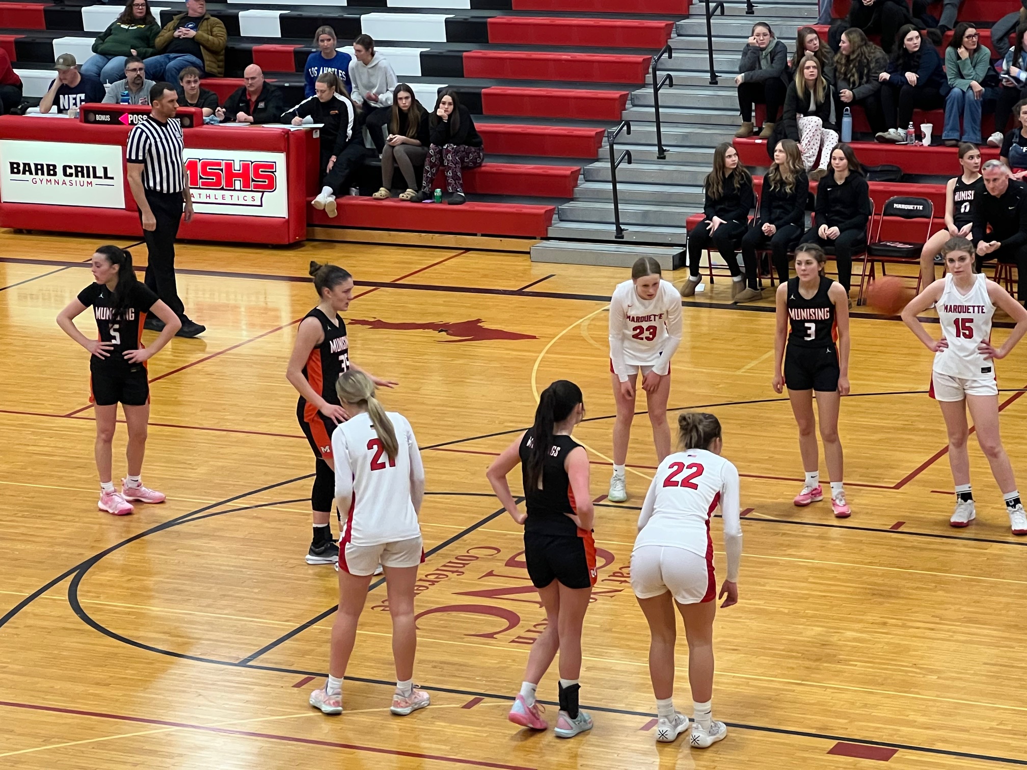 Mustang girls just short, falling to the Marquette Sentinels, 53-58 tonight in Marquette.