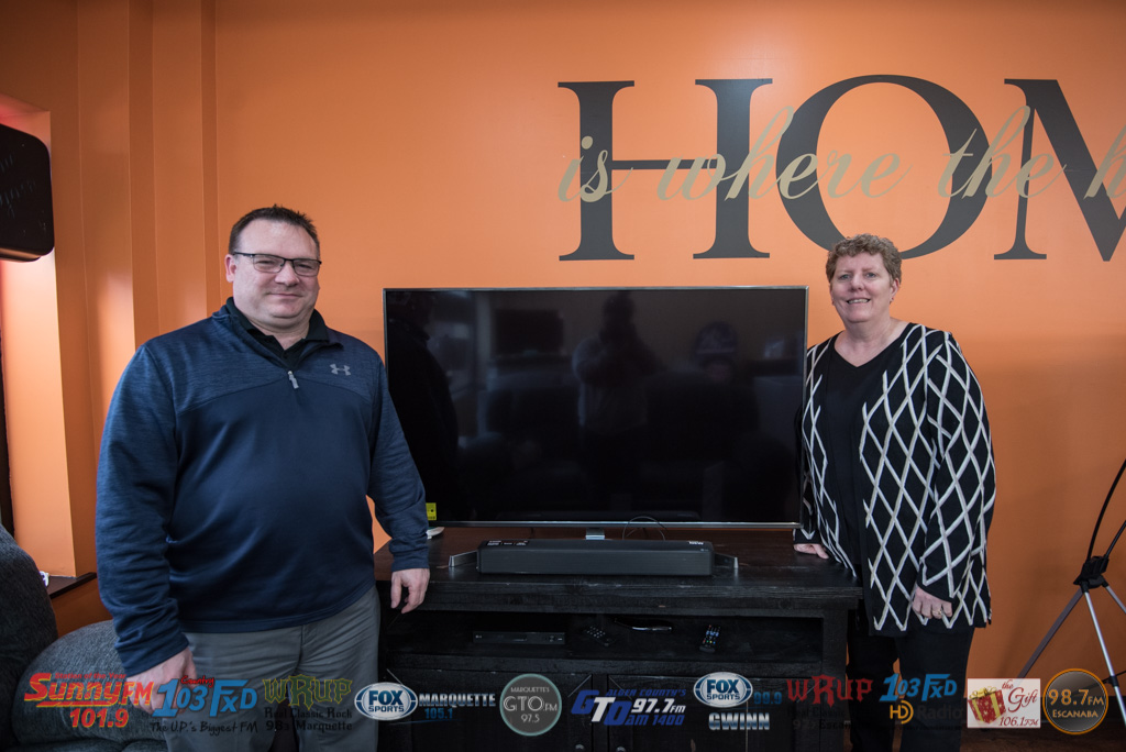 Calvin, Regional Manger of Appliance and Furniture Rent-All Marquette with Rent-All Win-All Entertainment Giveaway winner, Rebecca McLaren